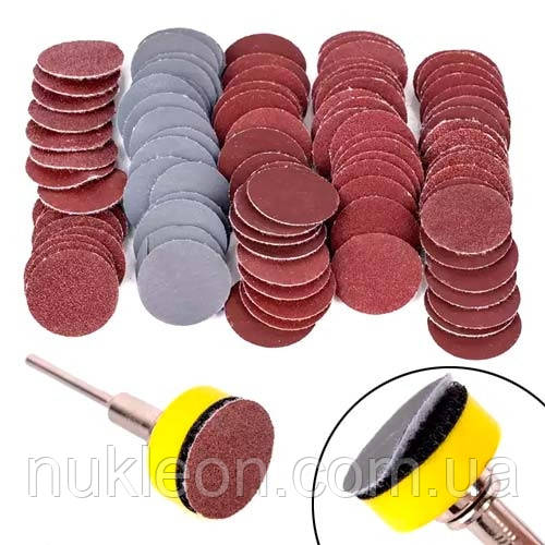 Популярний! Шліфувальний диск і 100шт кругів 25мм на липучці для гравера дремеля - Краща якість тільки на Nukleon.com.ua